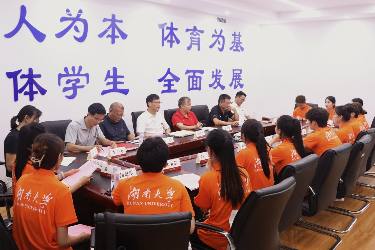 9月11日上午,湖南大学体育学院2025级新生开学典礼在游泳馆大会议室举行。体育学院领导班子、研究生导师、行政教辅老师及全体新同学参加典礼。院党委副书记李小龙主持。